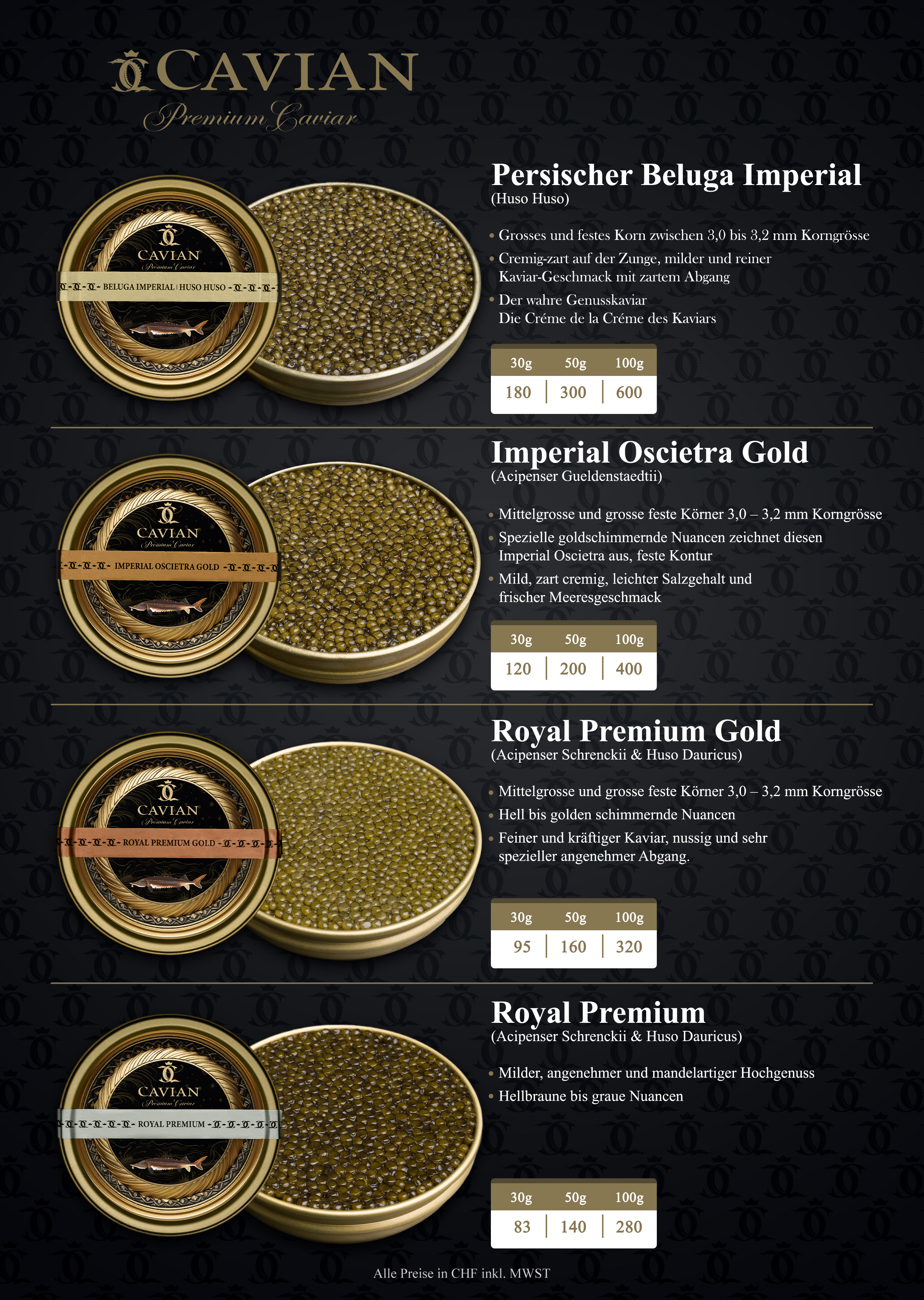Die Firma Luxury Food GmbH mit Sitz in Zug hat sich mit der Marke CAVIAN auf den Vertrieb von Kaviar der Top-Klasse spezialisiert.